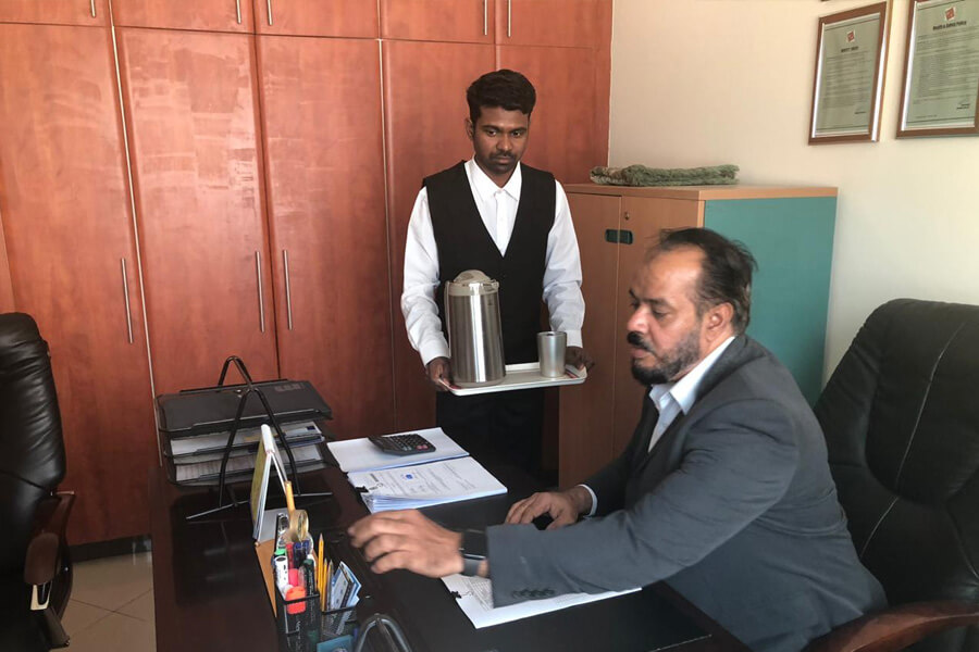 In our endeavor to servicing our customer requirements as best possible at all times, we also provide well-trained personnel on contract to corporate houses including banks and financial institutions. These smartly uniformed hospitality industry professionals not only make and deliver your favorite beverage but also ensures that your office is always spotlessly clean. Proficient in Arabic and English, oftentimes, they even double as office assistants rendering many a helpful service that is highly appreciated.